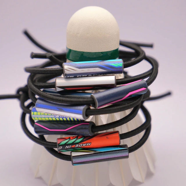 Armband mit Anhänger aus recyceltem Badmintonschläger.